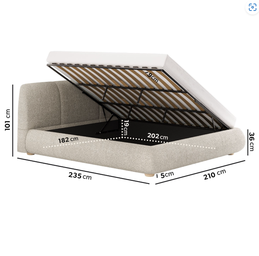 Beige Boucle Side-Lift Ottoman Bed with Cushioned Headboard - Ciara