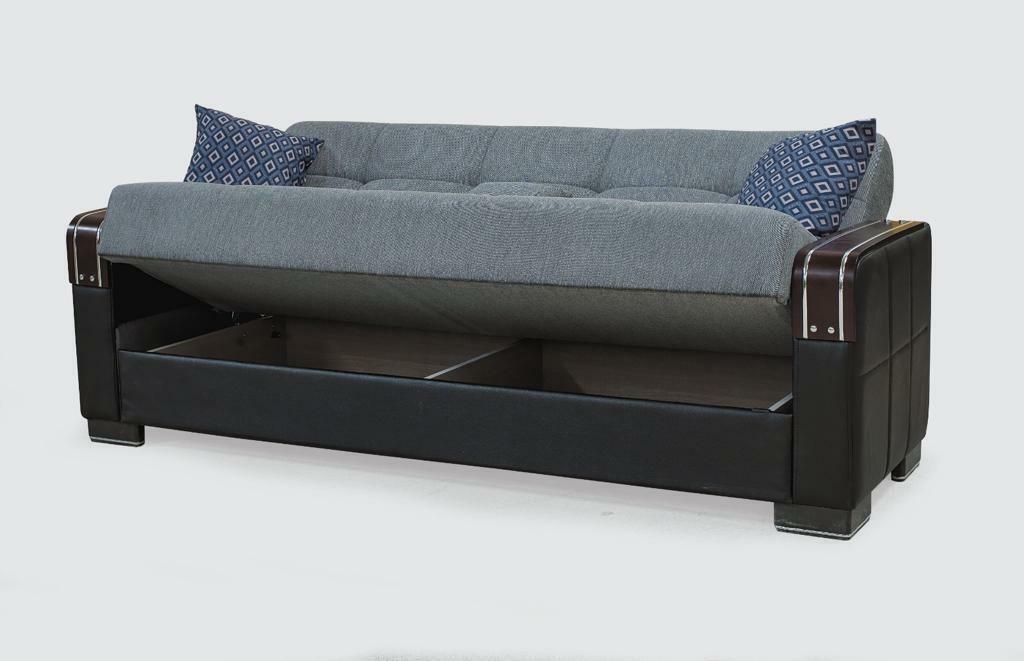 The Malta Ottoman Sofa Bed features a contemporary design with storage capabilities. It allows you to store items like pillows and blankets while still providing a comfortable seating and sleeping option. Its design makes it perfect for any living space.