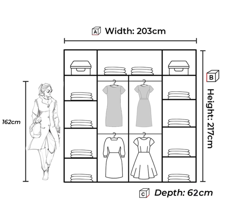 The Mirror of the moon wardrobe is designed nicely to provide you the unique look. The wardrobe has a number of shelves to organize your thing (Depending on the size you have).The universal inside of the wardrobe makes it different from others you can assemble it according to your requirement.